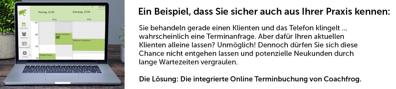 Wie eine gross angelegte Studie des Online-Dienstleisters Doodle zeigt, buchen 81 Prozent der Befragten lieber über das Internet. 80 Prozent stört es vor allem, wenn das Telefon besetzt ist. Ein weiterer Grund, Online-Buchungen zu bevorzugen, ist die Unabhängigkeit von Öffnungszeiten. Gerade für Therapeuten und ihre Mitarbeiter ist es oft schwierig, Telefonanrufe während der Kerntätigkeit entgegen zu nehmen. Behandlungen zu unterbrechen, um einen Anruf zu beantworten, kommt auch beim Klienten in der Regel nicht gut an. Mit einem Online-Buchungssystem können Termine von überall und jederzeit getätigt werden – das spart Ihnen Leerlaufzeit und Hektik in der Praxis. Es mag sein, dass der Einzelne andere Vorlieben hat. Doch wer seinen Klienten die Möglichkeit zur Online-Buchung von Terminen bietet, kann mit einer positiven Resonanz rechnen.